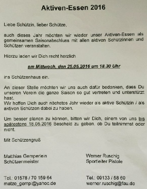 - Mittwoch, 25.05.2016, Aktiven Essen